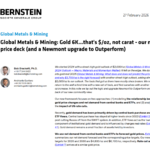 2026年2月27日,伯恩斯坦(Bernstein)发布《Global Metals & Mining: Gold 6K...that's $$/oz, not carat》研报,给出震撼预测:2026年黄金目标$$4800/oz,2030年直指$$6100/oz,同时将纽蒙特评级上调至“跑赢大盘”,目标$$157/股。 研报核心框架聚焦两大维度:一是央行与ETF净需求和金价的线性关系,二是美联储降息的提振效应,再叠加央行调查与历史趋势双重支撑,逻辑闭环严密。 关键数据藏在四张核心图表里: Exhibit 1(研报第3页):黄金价格预测表清晰显示,伯恩斯坦对2026-2030年的预测均大幅跑赢市场中值,2030年$$6100/oz的目标价,较市场最高预期还高$$1300/oz,凸显坚定看涨立场。 Exhibit 4(研报第8页):2010-2025年央行+ETF季度净需求与金价变动散点图,呈现明确正相关(R²=0.4326),直观证明净需求 inflow 时金价上涨概率显著提升,outflow 则必伴随金价下跌。 Exhibit 7(研报第11页):90+次降息周期数据统计,显示每次降息后12个月,金价平均上涨6.53%,结合2026年市场预期2-3次降息,测算将为金价带来13%-19.5%的潜在涨幅。 Exhibit 18(研报第17页):2012-2025Q3全球外汇储备货币占比趋势图,美元占比从61.8%持续下滑至56.9%,而黄金2023年已占全球储备的14%,去美元化趋势为金价提供长期支撑。 需求端,央行与ETF形成双重合力。2022年俄乌冲突后,央行购金量持续高于2010-2021年均值,2025年达863吨(近乎翻倍),中国、波兰、土耳其是主要买家;2025年黄金ETF流入801吨,扭转2024年流出态势,成为推动金价突破$5000/oz的关键力量。 金矿股方面,纽蒙特因新任CEO议程清晰、生产指引有望超预期,EBITDA上调26%至$$219亿;巴里克维持“跑赢大盘”评级,目标价上调$$62.5。 风险同样不容忽视:央行购金减速、实际利率走高、特朗普中期选举失利导致避险需求降温,都可能打乱金价上行节奏。 整体来看,伯恩斯坦用数据和模型论证了黄金的长期上行逻辑,无论是资产配置还是赛道关注,都提供了明确方向。 需要完整报告,可私信我,进我的外资研报知识库:知识库是一个汇集全球顶级投行(如高盛、摩根士丹利、瑞银等)最新研究报告的知识库。它每日更新,内容覆盖全球宏观经济、股票市场、行业趋势及公司深度分析。是你手机里的经济顾问智囊团,能够根据你的个性化问题,基于专业的私有数据库,给你最为精准可靠的答案。 还可以参加我的深度阅读换脑计划,计划是为拒绝浅阅读、追求认知升级的你打造的专属IMA知识库。每日更新顶级外资研报,每周同步原版外刊,覆盖全球顶级报告,提供图文+音频翻译解读,搭配AI知识库,多端同步、干净无干扰,帮你高效获取一手信息,提升决策力与认知格局。