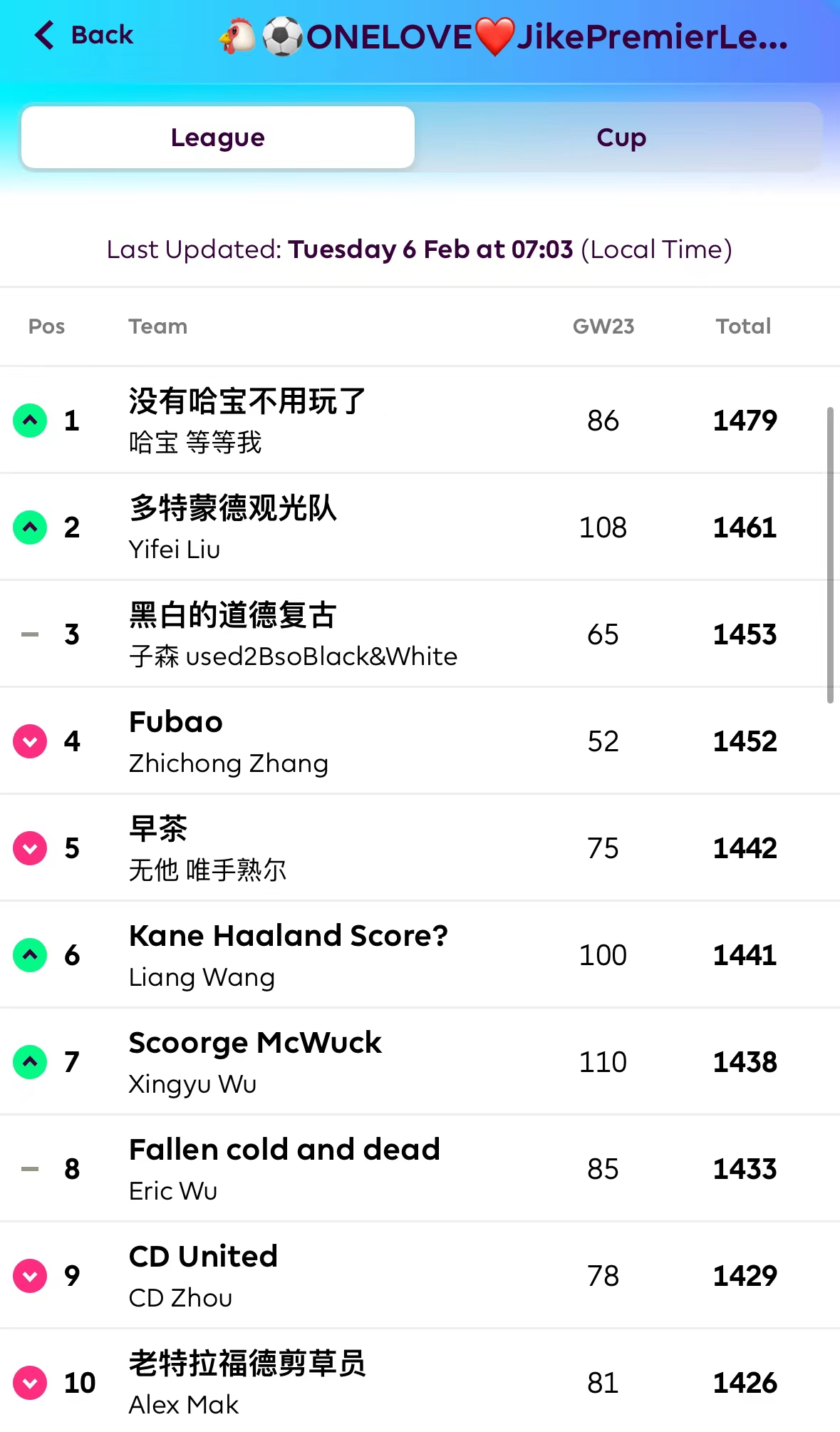 现在就登录英超官网fantasy.premierleague.com注册球队,挑选阵容,输入邀请码【y0dd32】加入 🐔⚽️ONELOVE❤️JikePremierLeague鸡超联赛