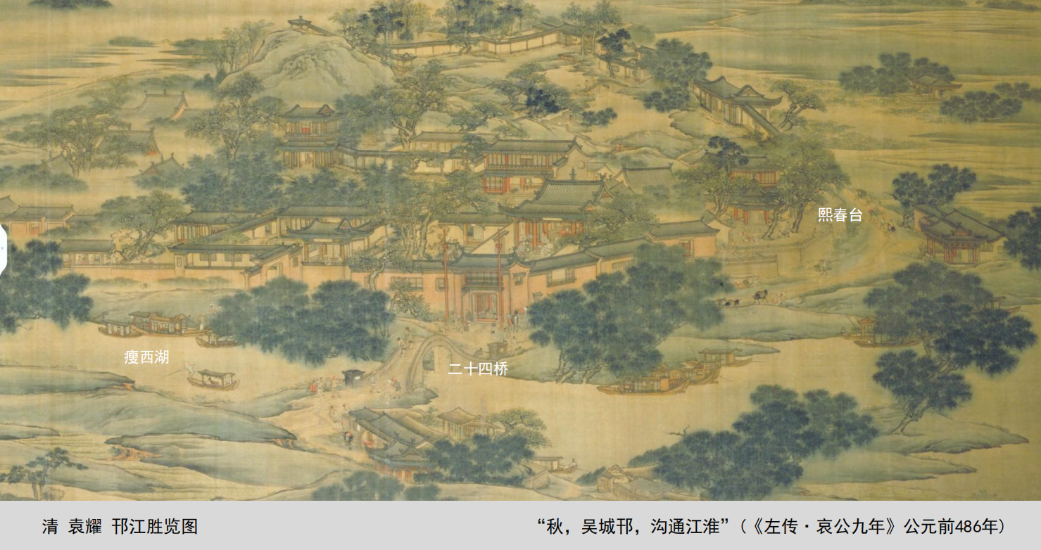邗沟,沟通长江和淮河的古运河。《左传》中记载:秋,吴城邗,沟通江淮。