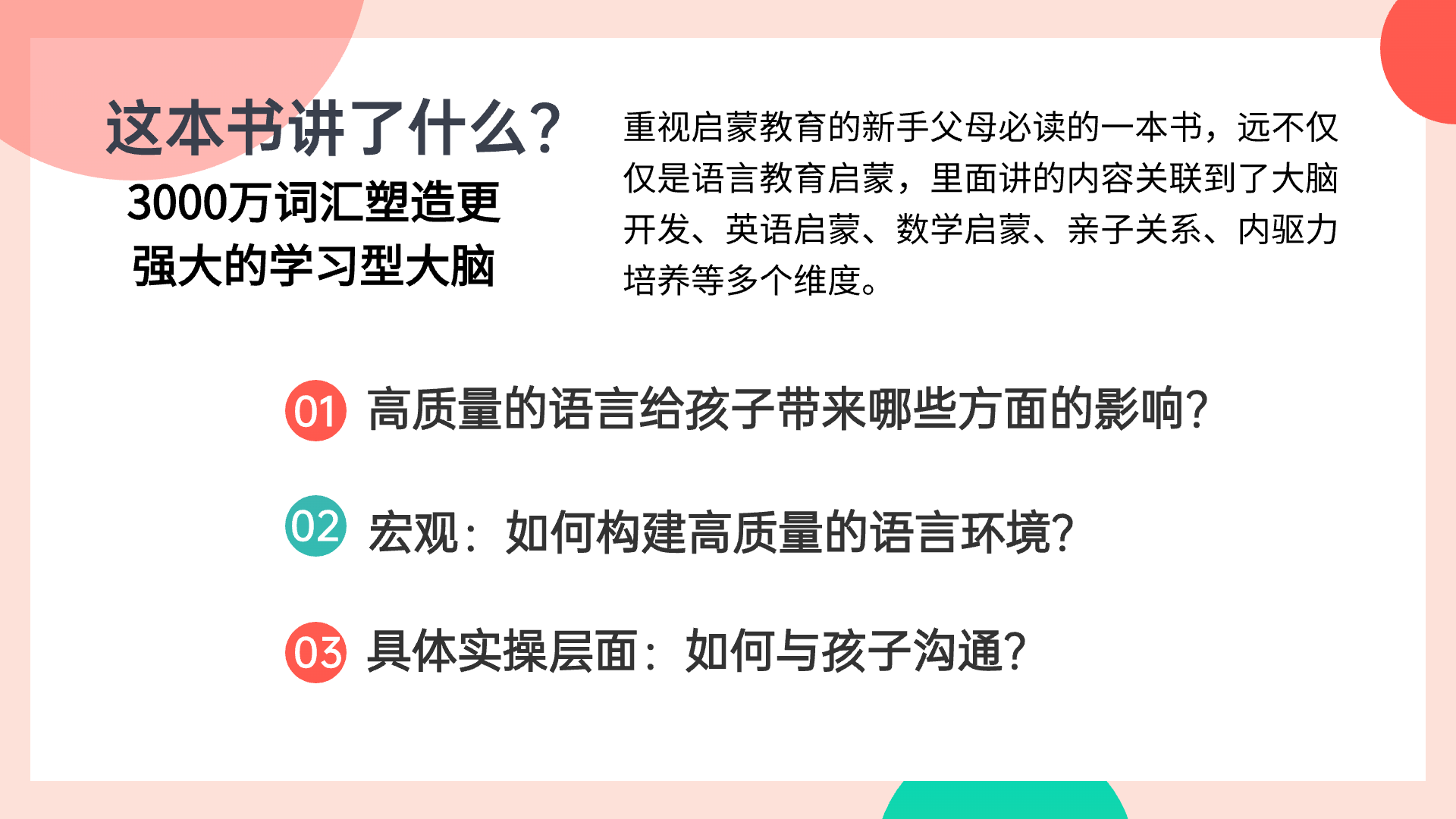 00:00 引入:《父母的语言:3000万词汇创造学习型大脑》是0-3岁家长必读育儿书籍