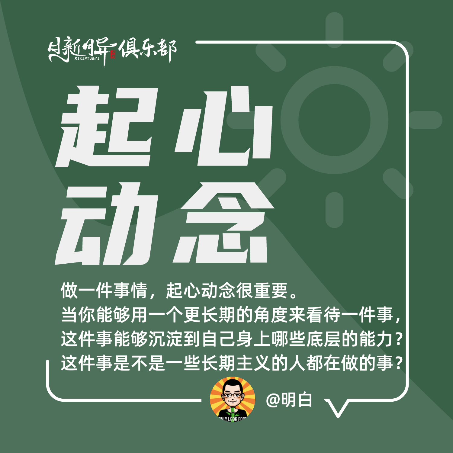 所以做一件事情,起心动念很重要,当你能够用一个更长期的角度,更高维度的角度来看待一件事情,这件事情能带给你这个人什么样的收获?能够沉淀到自己身上哪些底层的能力?或者说这件事情他是不是一些长期主义的人都在做的事情?