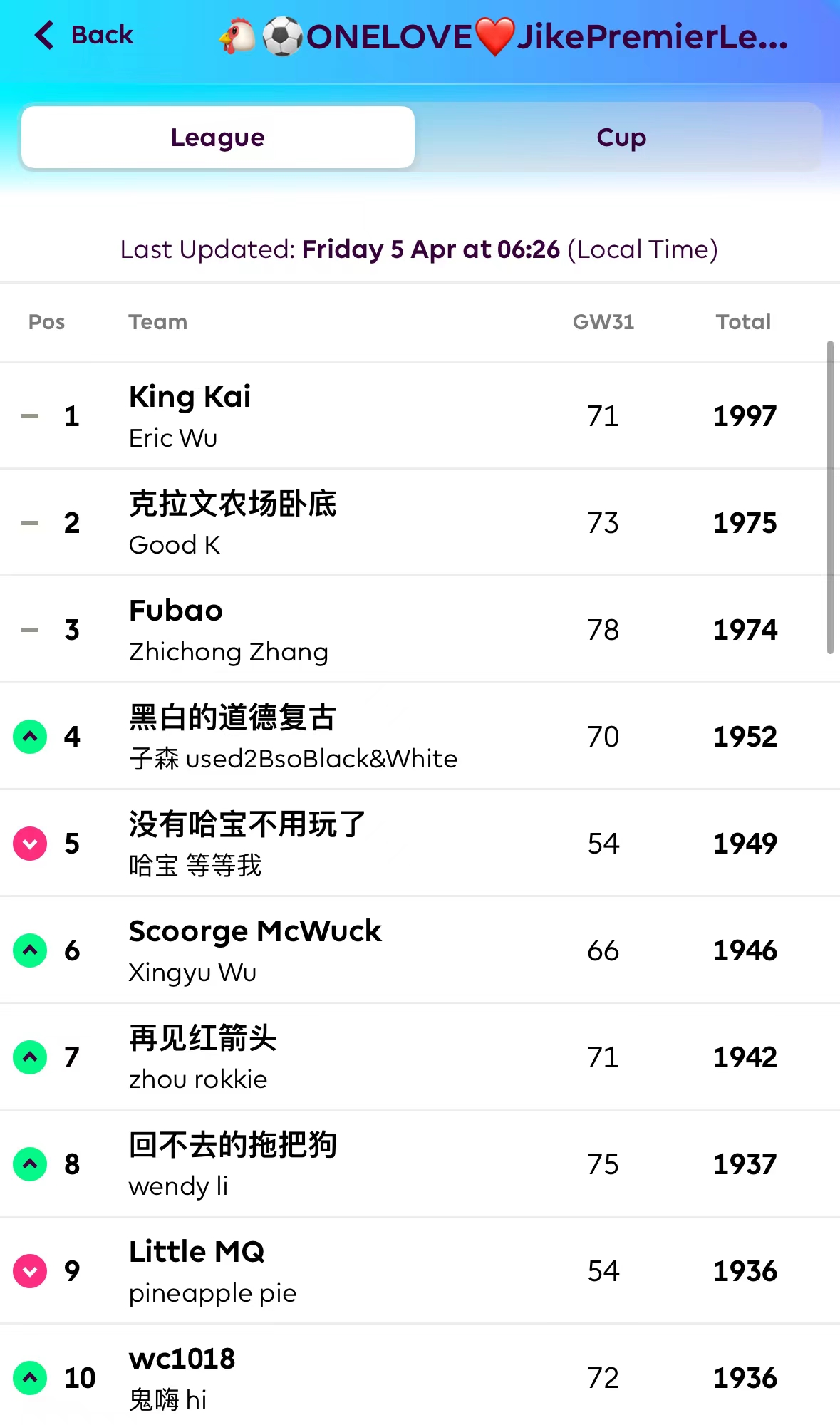 现在就登录英超官网fantasy.premierleague.com注册球队,挑选阵容,输入邀请码【y0dd32】加入 🐔⚽️ONELOVE❤️JikePremierLeague鸡超联赛