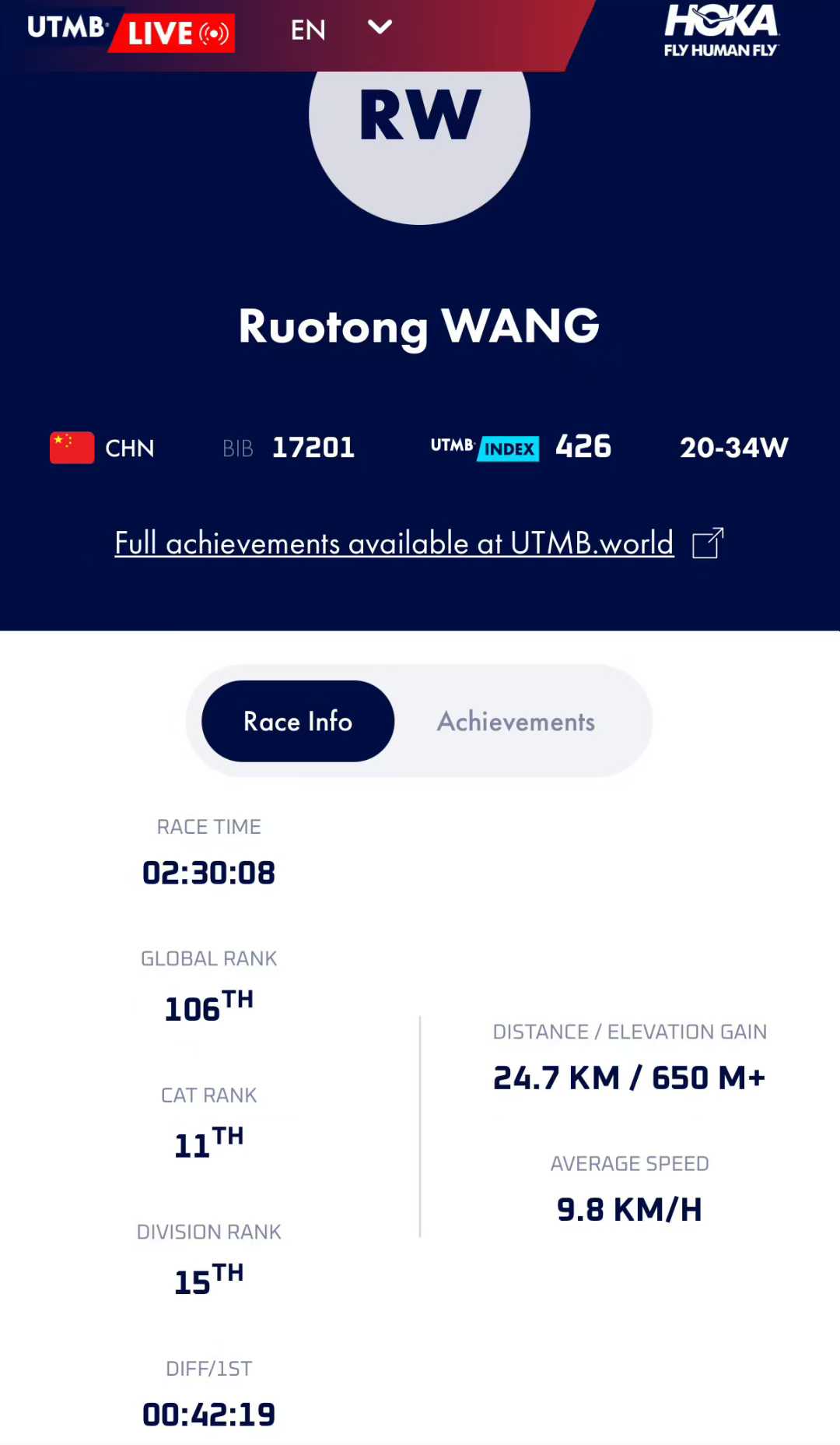 前一天当私补折腾了20多个小时,睡了一个小时之后美美完赛25公里组别并喜提第15名的Tia(tql