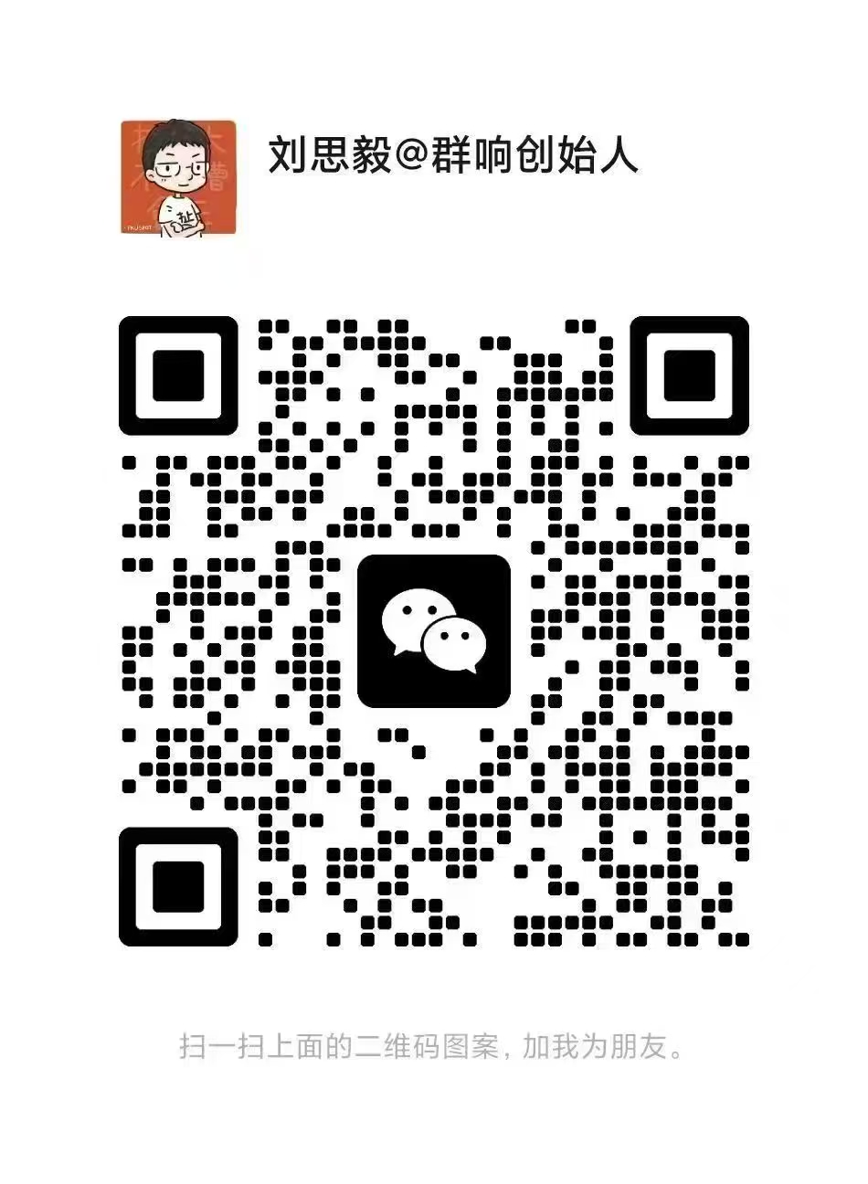 刘思毅:公众号「群响刘老板」,群响创始人,每天访谈1位年入 100 -1000 万的年轻创业者、日更原创文章 2000 天,和100万年轻创业者一起成长的男人。