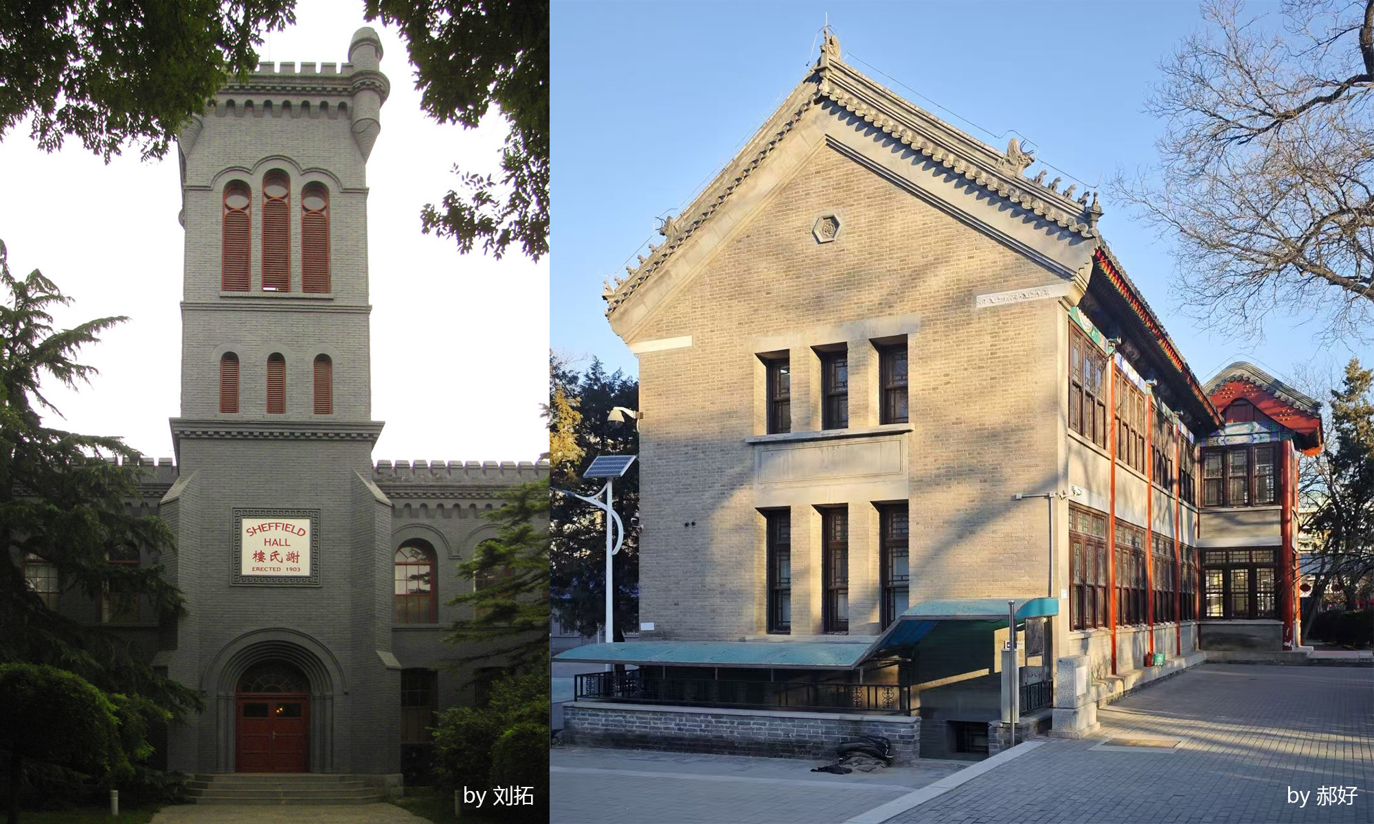 通州区的美国基督教教会学校遗存——潞河中学(左)和富育女校(右,今通州区二中):