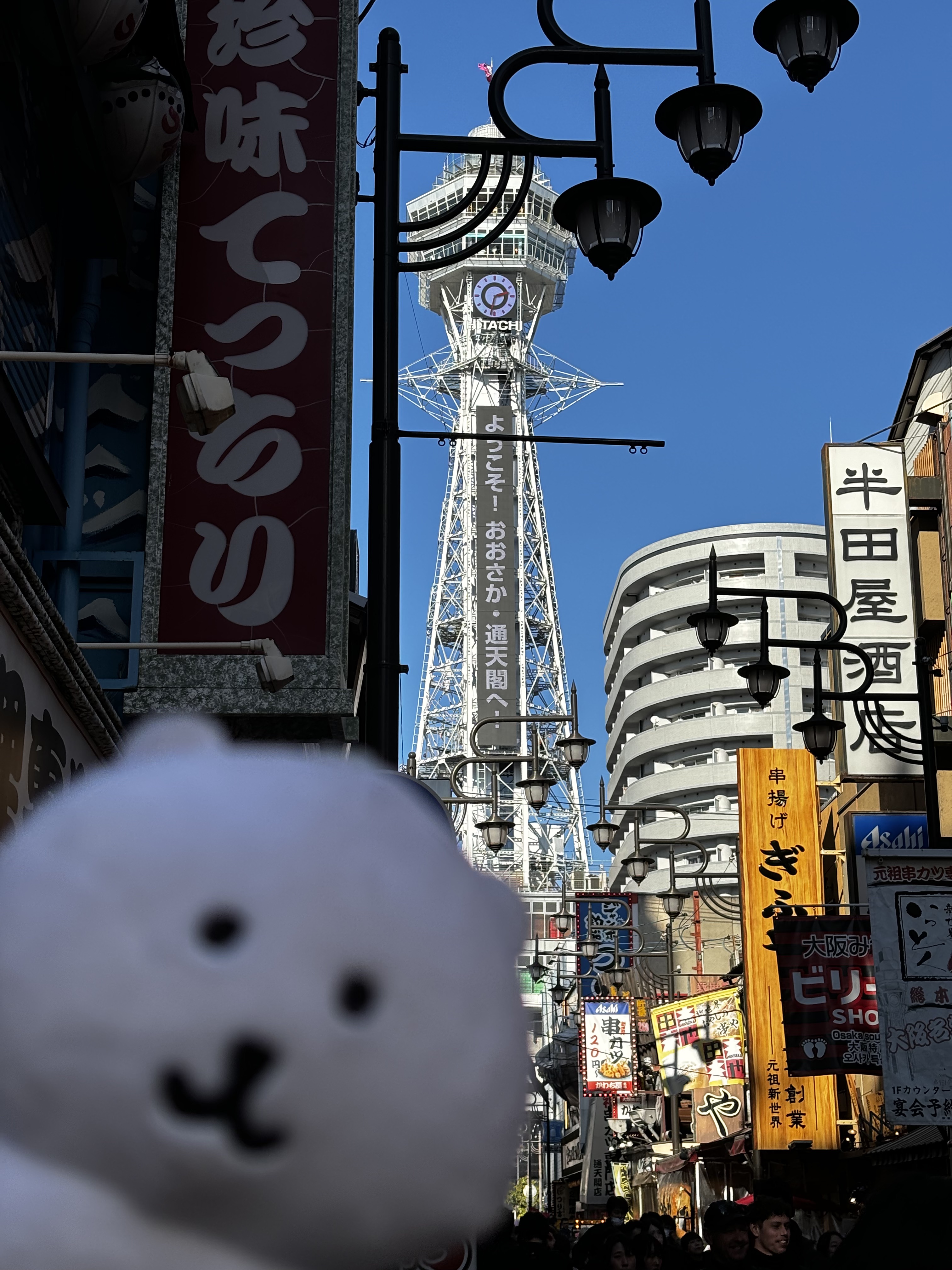 还提到了通天阁的有趣体验,特别是通过加钱可以到达更高处观察人们拍照的多样反应,增添了旅行的乐趣和丰富性(人类观察学家狂喜)。