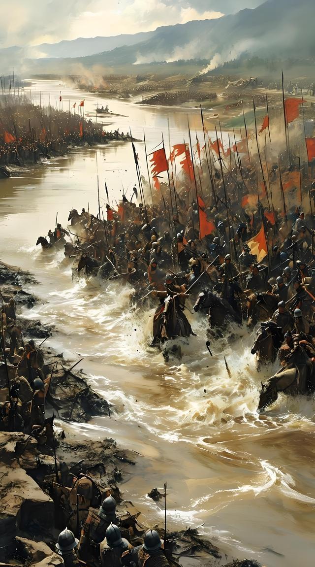 苻坚决定以优势兵力强渡淝水,一举击溃晋军。他命令前秦军队后退,腾出空间让晋军渡河,企图在晋军半渡时发动攻击。但这一战术被东晋识破——谢玄派使者对苻融说:“君悬军深入,而置阵逼水,此乃持久之计,非欲速战者也。若移阵少却,使晋兵得渡,以决胜负,不亦善乎?”(《资治通鉴·晋纪二十七》)——您孤军深入,却把阵势摆在河边,这是打持久战的架势,不是想速战速决。如果贵军稍微后退,让我军渡河,然后决一胜负,不是更好吗?