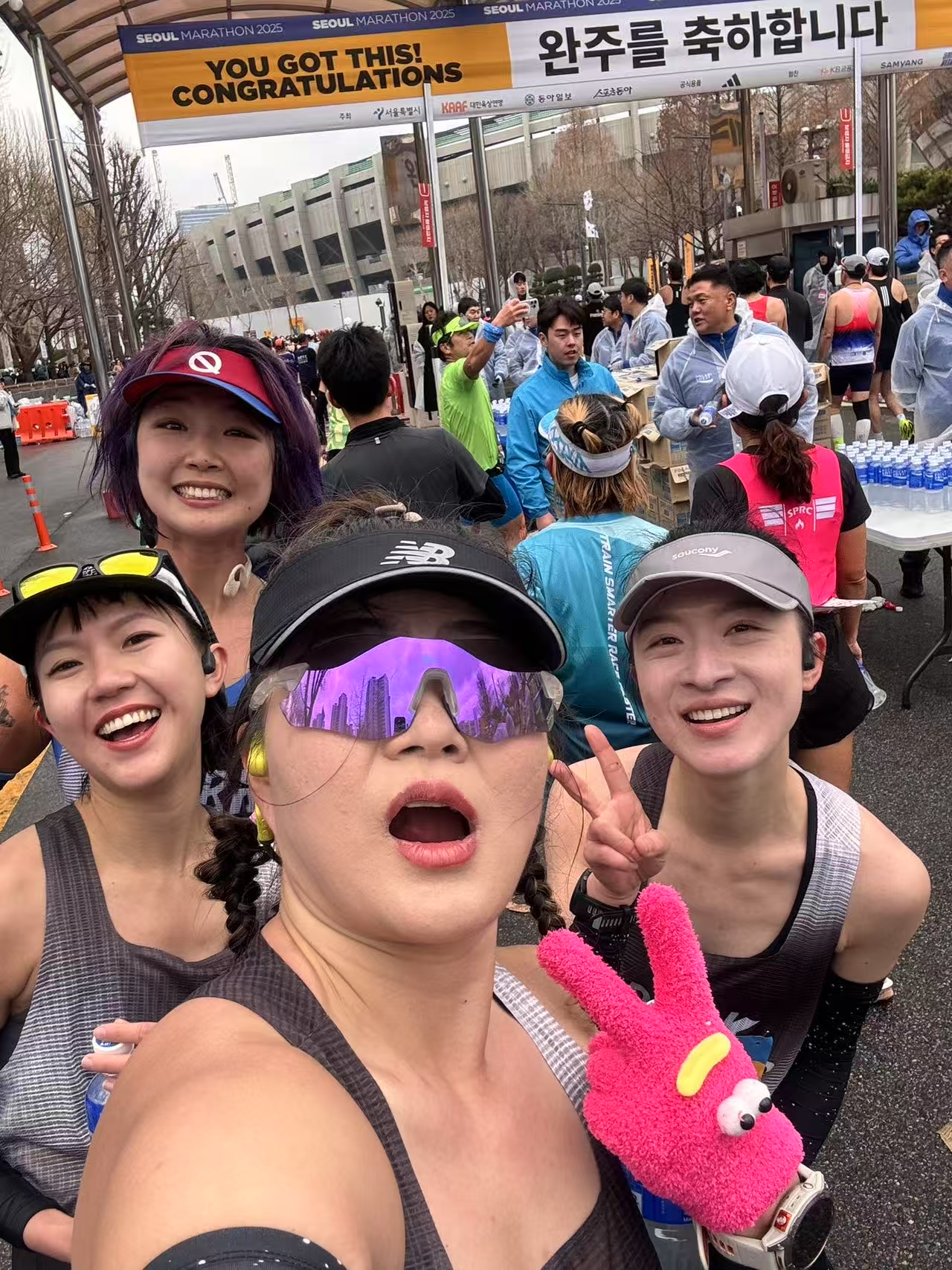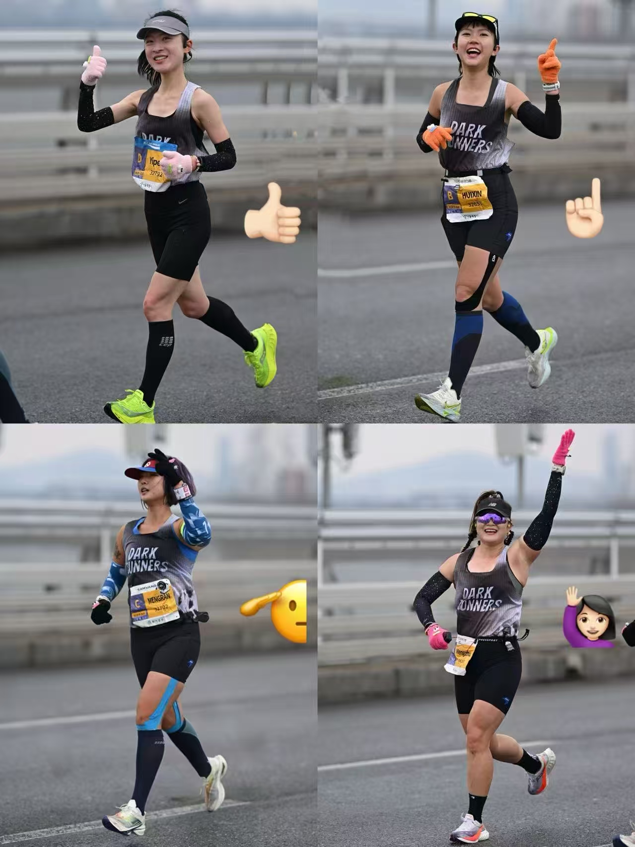 - 暂停一下!让我们恭喜小美345首尔马拉松PB, 异地第一次艰难作战,有人发现,竟然是4个女生全程一起互相破风,冲向终点!原来是Kerry、锤锤、小马在为小美保驾护航......