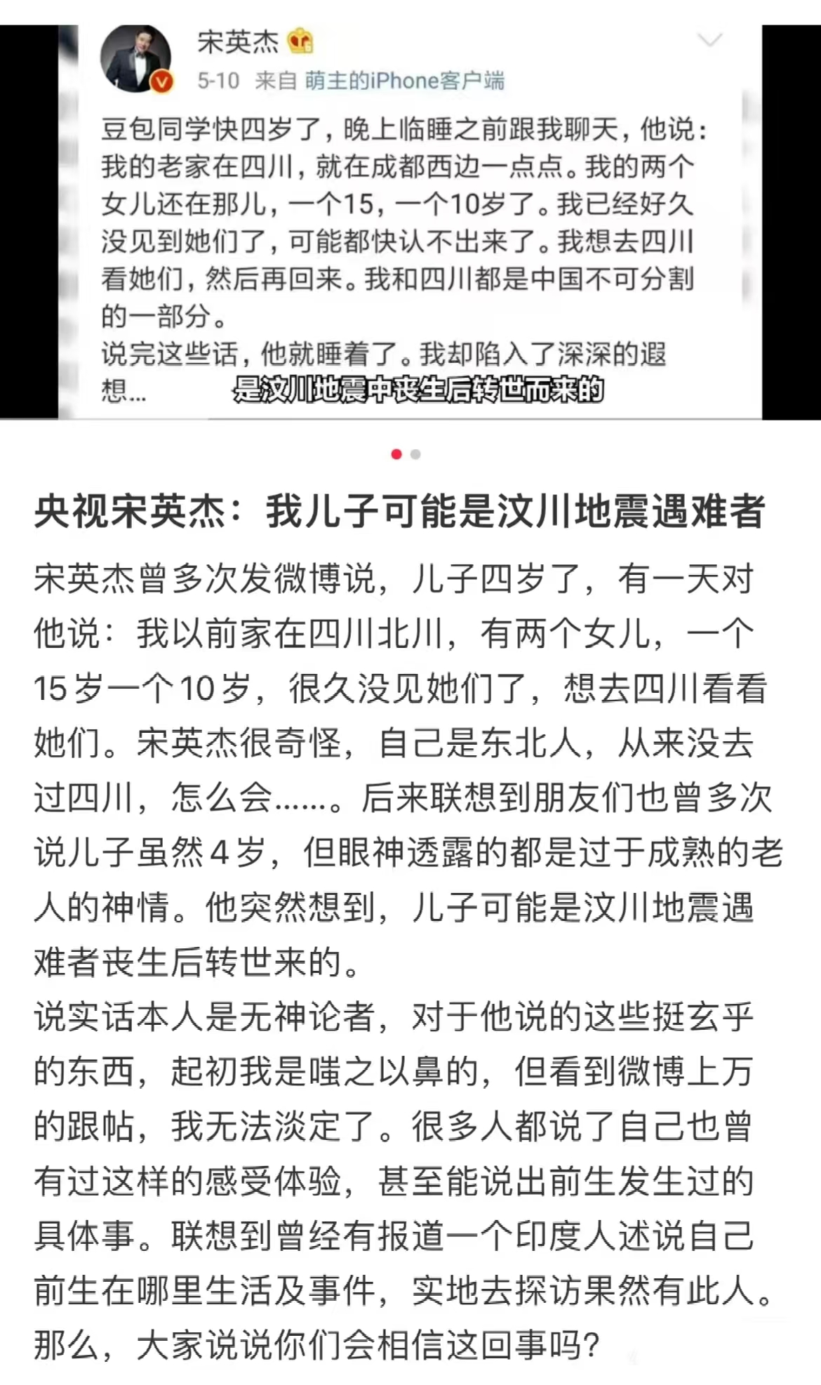 关于真相究竟为何,“转世村”居民表示:在现代科学尚无法解释的情况下,希望能保留再生人的神秘色彩。这是令科学家们困惑不已的问题,转世人的传说令人惊叹,世间奇事繁多,科学难以解释的现象亦不在少数。村庄内百余位轮回者的故事为这片神秘土地增添了一份神秘色彩,期待有朝一日,转世人的秘密得以揭示!