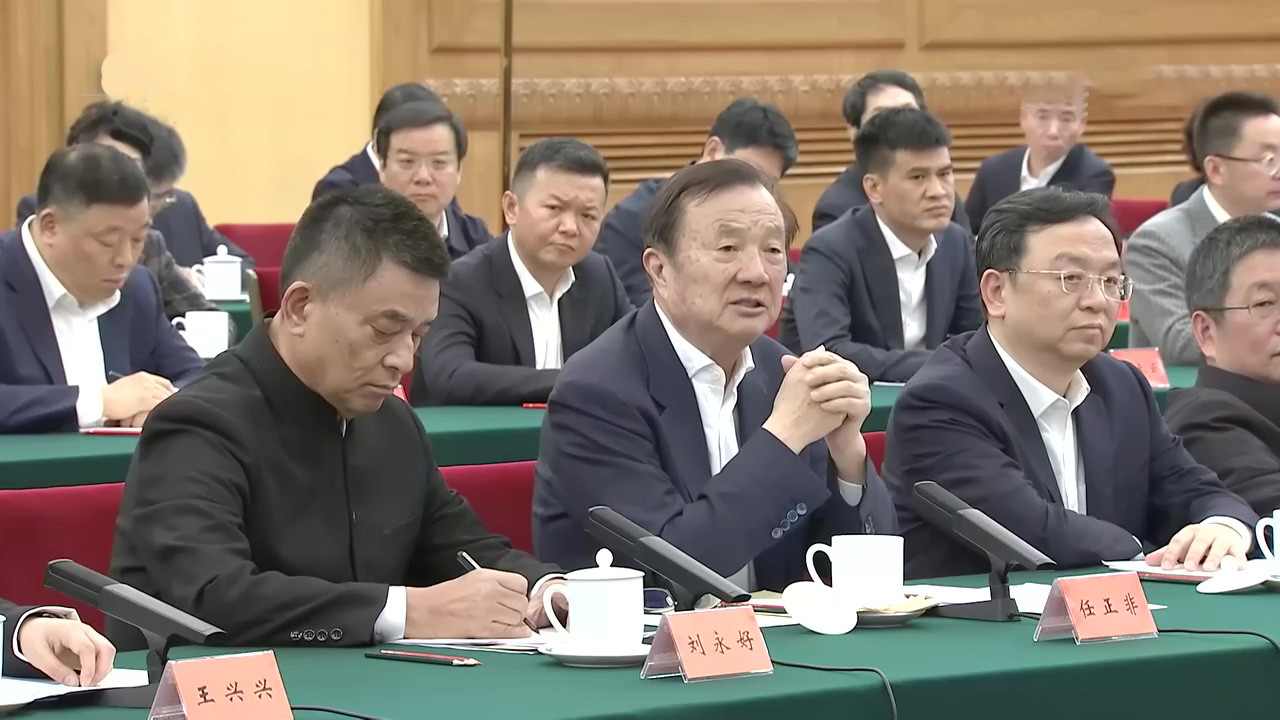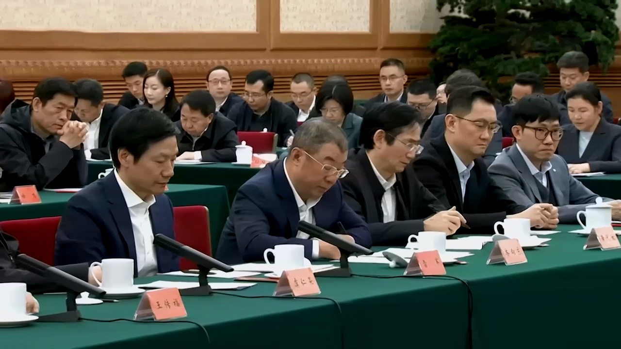 梁文锋在马化腾边上,表情严肃