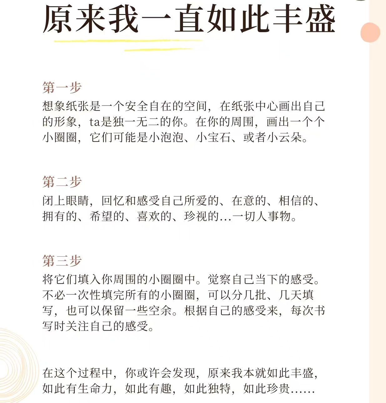 最后还想跟大家分享一个心理小活动:原来我一直如此丰盛🫶