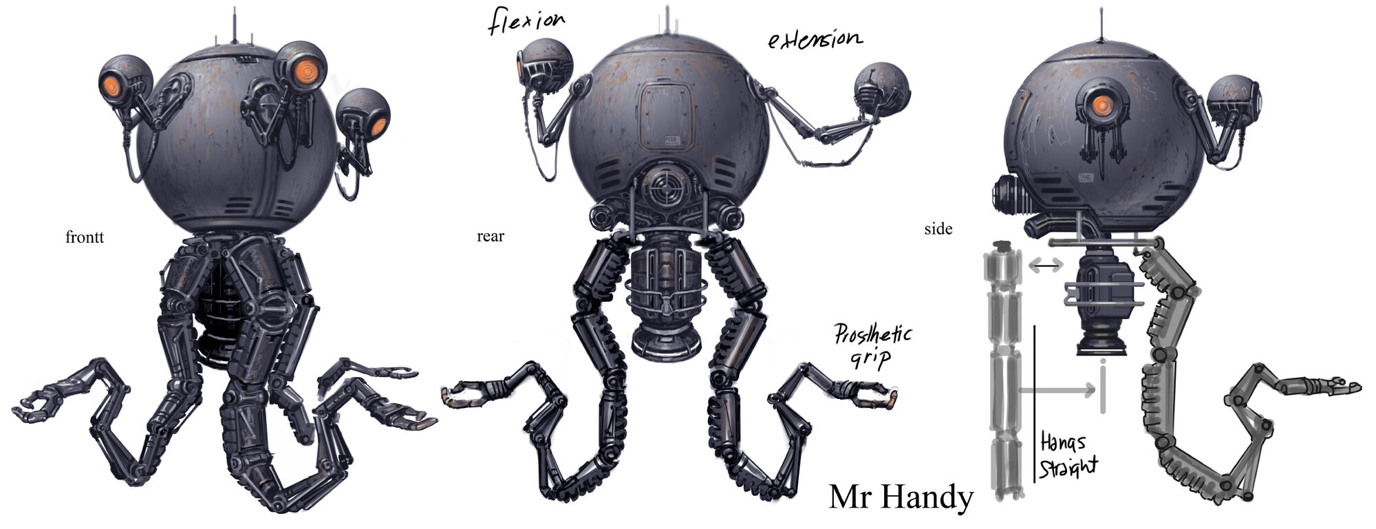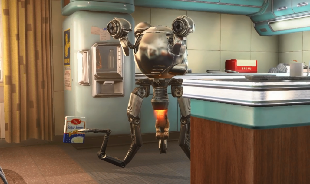 家庭机器人形态畅想,我觉得应该是类似辐射里的mr.hand那样的浮空球+机械臂形态,复古又实用⬇️