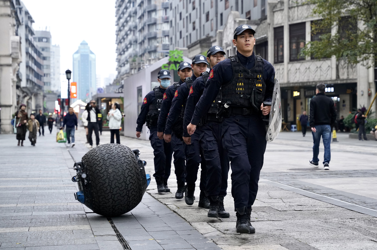 节目中提到的球型警察机器人上街巡逻了⬇️