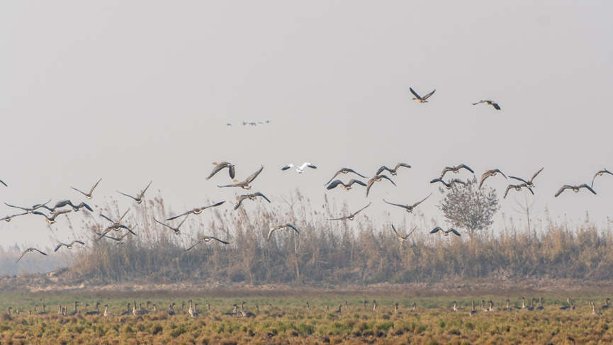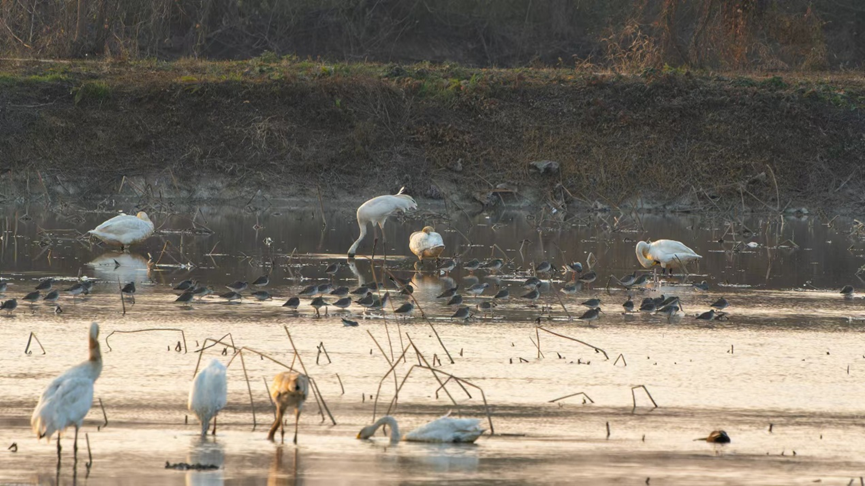 11:02五星小区的白鹤、小天鹅和长嘴半蹼鹬