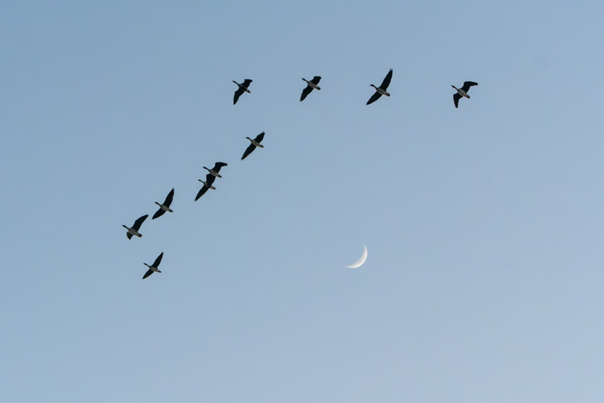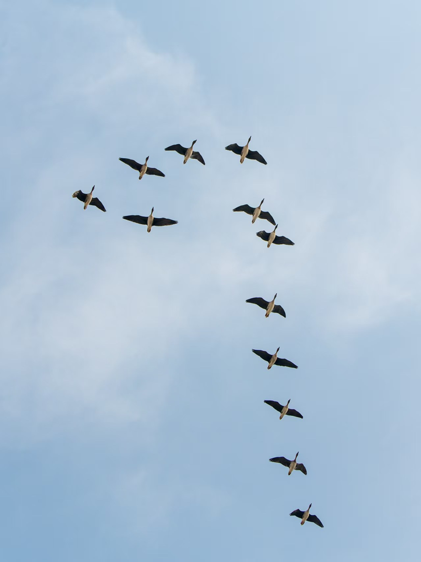雪雁是雁群中最明显的白点!©布林