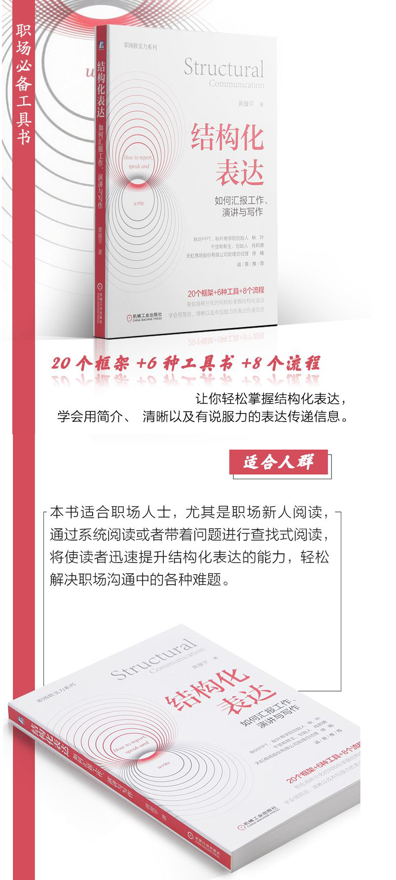 黄漫宇:中南财经大学教授,出版《结构化表达》《结构化汇报》等职场沟通畅销书,累计销量超50万册。