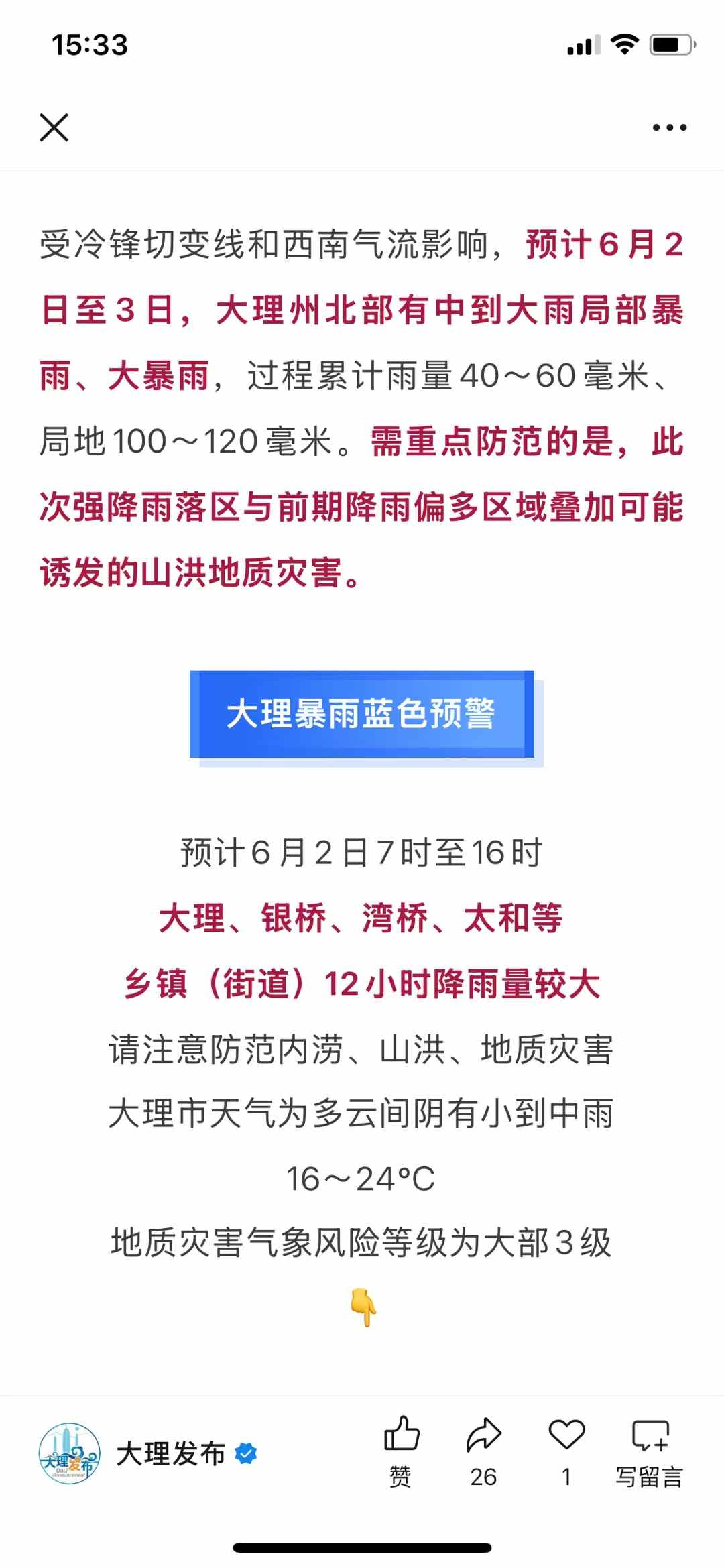 08:43 大理发布:暴雨蓝色预警