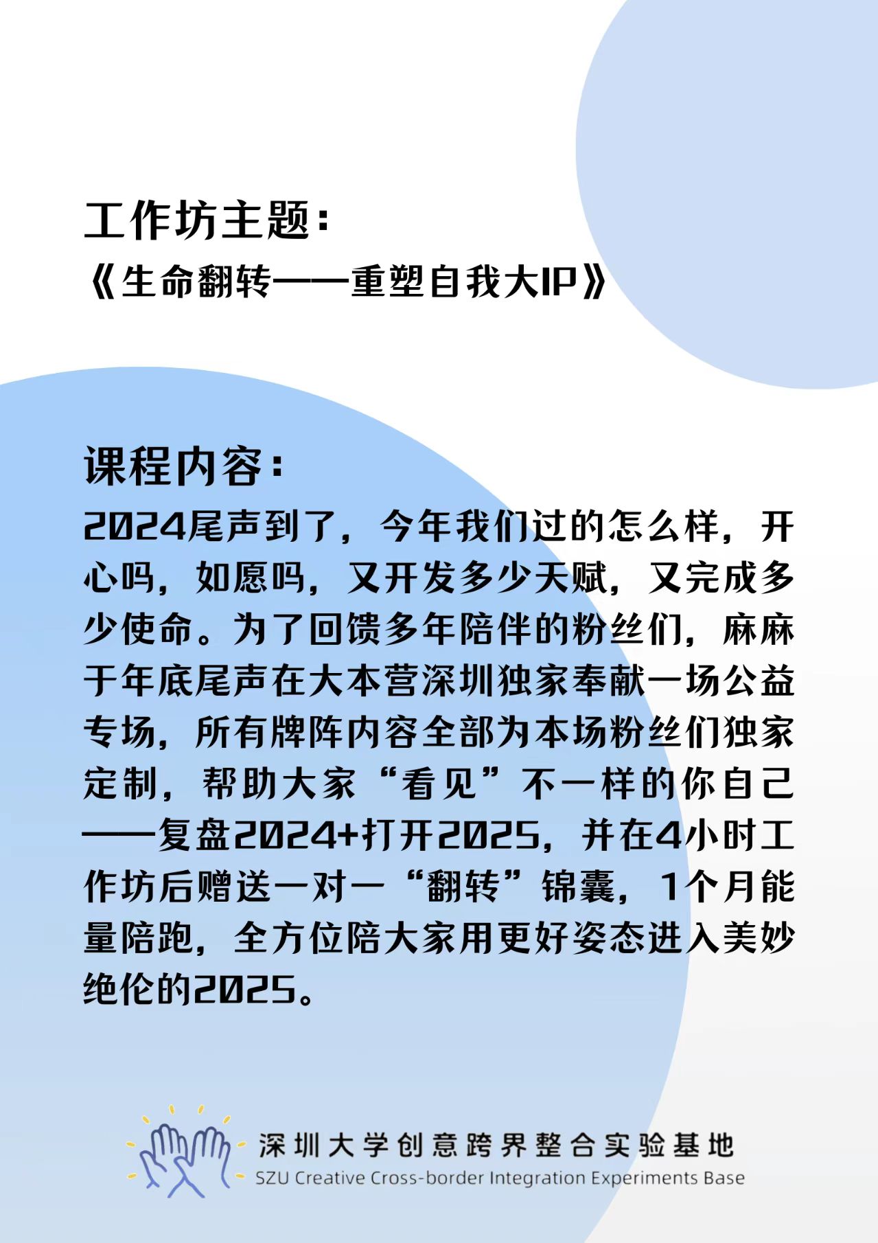 《生命翻转一一重塑自我大IP》工作坊