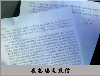 我对自己所做的令人惊悚的行为向所有人道歉,我知道由此给受害者造成的心理创伤无法挽回。为此,我愿意接受法律的惩罚,也希望别人能从我的教训中引以为戒,不再犯类似的错误。