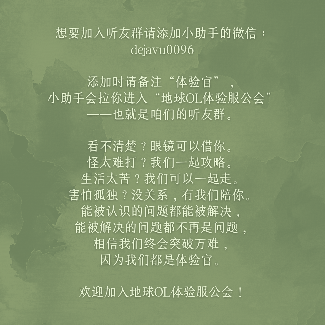 地球OL体验服,是针对地球这个开放世界的各种关卡和剧情打造的一档公会式节目。我们会在这里不定期分享地球OL攻略、奇遇体验以及聊天沙龙。在这个一生一次的游戏里,每个人都是独一无二的体验官。