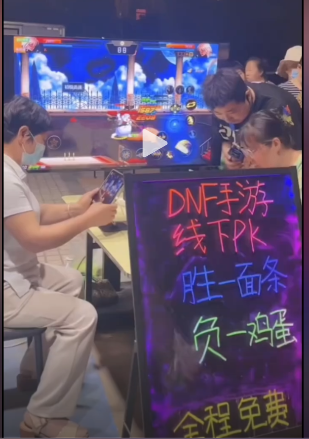 户外直播,老年组对决。DNF手游对打赢鸡蛋。瓦罗兰特打靶,打败敌人也可以赢鸡蛋