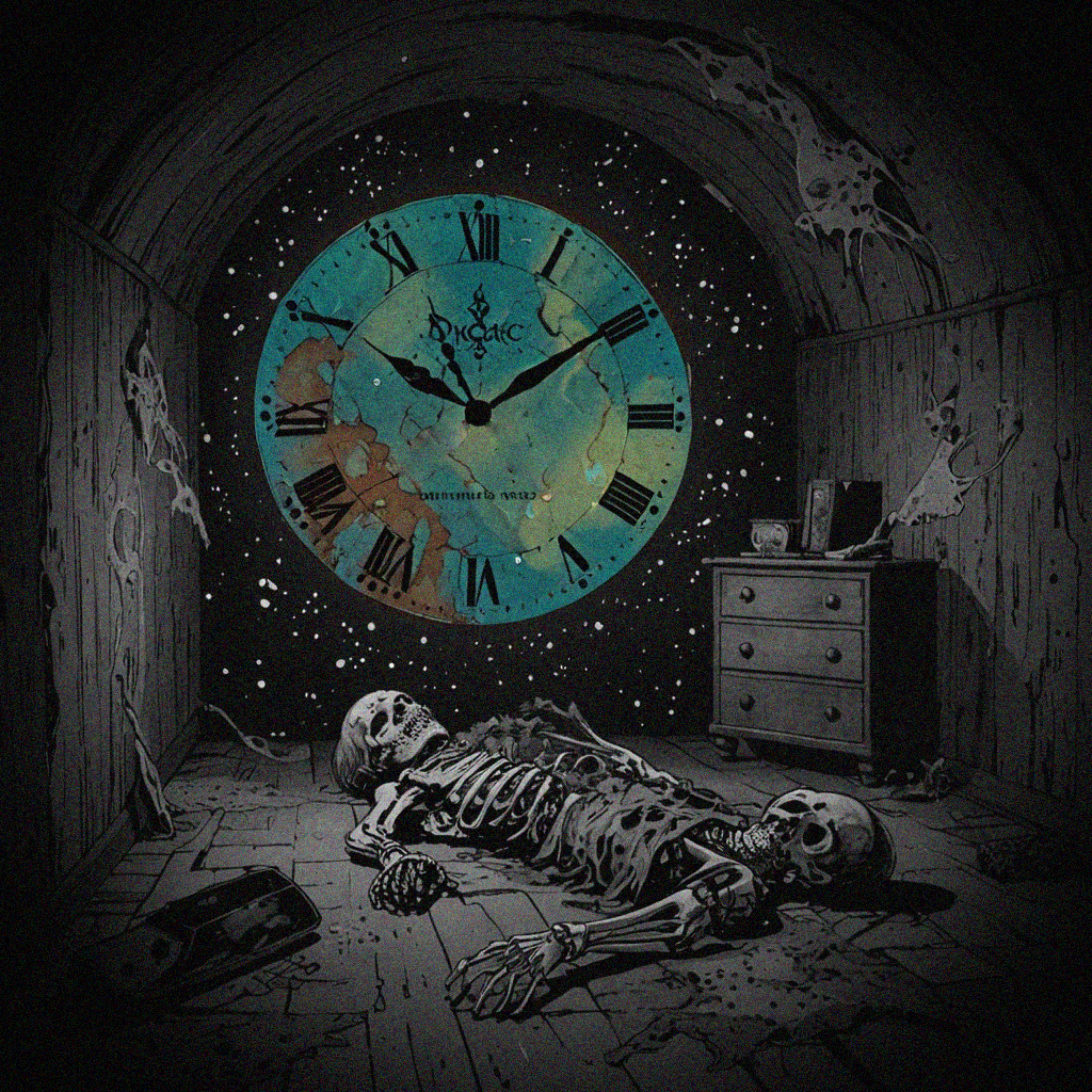 时钟碎裂的瞬间,一阵剧痛传遍全身。她惊恐地看着自己的皮肤以肉眼可见的速度衰老、干瘪,头发以秒速变白、脱落。骨头发出可怕的咔嚓声,仿佛正在急速风化。