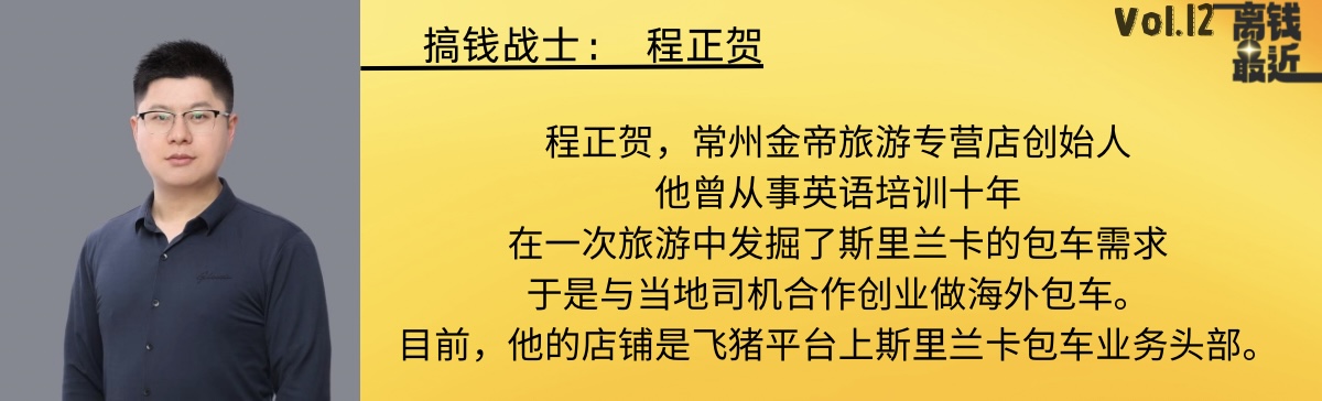 程正贺曾从事英语培训,做了十年英语老师。2016年,他带父母去斯里兰卡旅游时,发现了当地包车业务的痛点:没有售后、没有服务,所以萌生了自己做包车创业的想法。