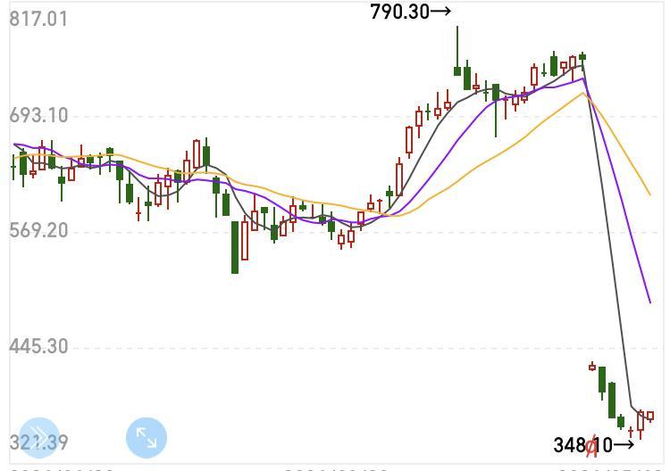 图中公司最近的分红方案是送股票,分配方案是每股10送10股,由于是送股票分红,所以后期对应的是除权操作,而除权后的股价直接腰斩,由之前的790元变成348元,看着是不是很恐怖?同时又觉得很费解,为何分送股后还要降低股价?其实你不用担心股价的问题,因为这种方式的“下跌”并不是真的下跌,只是为了调节分红后公司市值的变化。