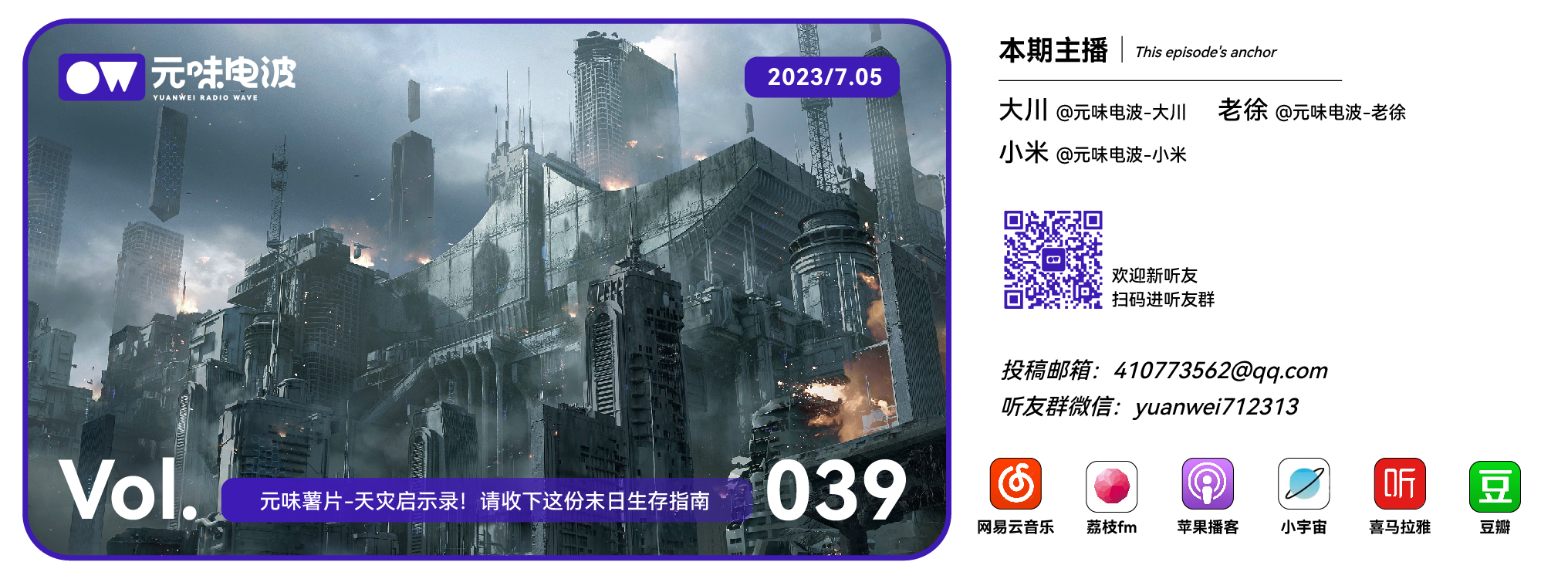 听众老爷们,一周一度的元味电波又来啦!今次由我们的冷笑话之王,元味谜语人,烂梗制造机老徐主导,为各位带来末日生存指南系列之天灾启示录,看看在自然灾害面前,阁下又该如何应对?老徐,大川,小米,阿懒在极端环境下又该如何分工和活下来!结尾依然是大川惯例给大家口,,,,啊呸!给大家惯例口播!注意听,节目正式开始!