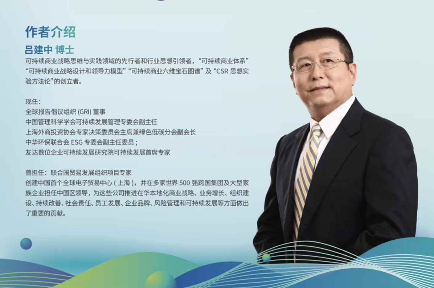 吕建中 博士:可持续商业战略思维与实践领域的先行者和行业思想引领者,“可持续商业体系”“可持续商业战略设计和领导力模型”“可持续商业六维宝石图谱”及“CSR 思想实验方法论”的创立者。