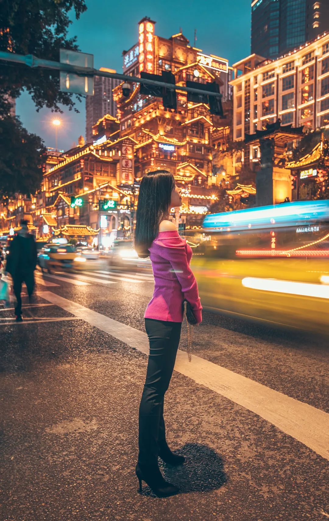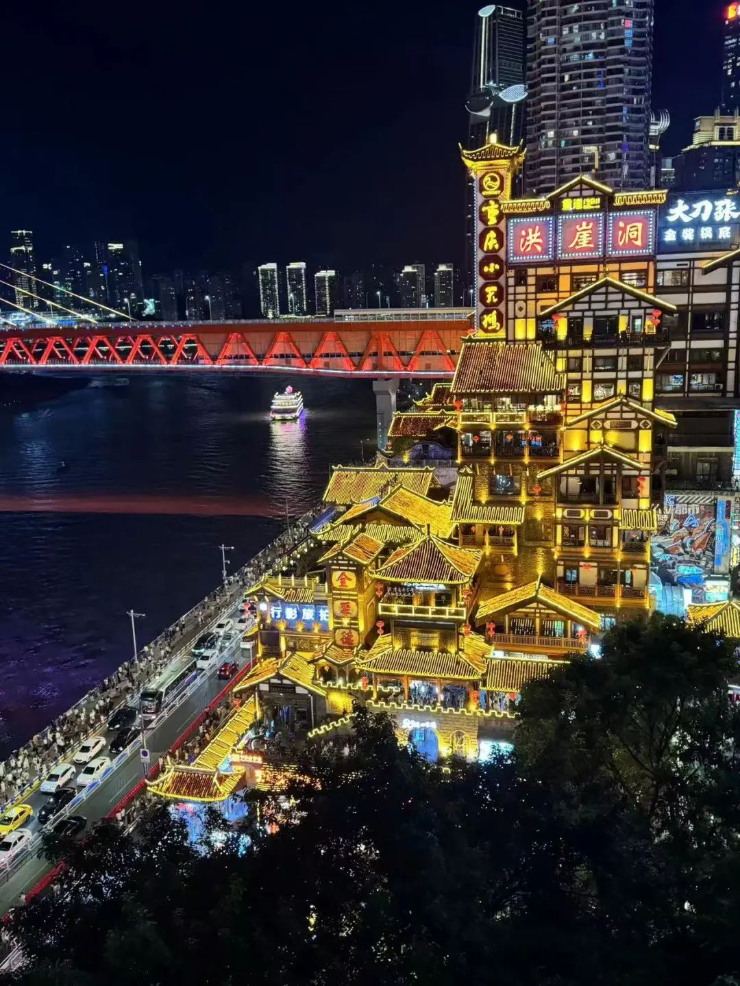 📸拍照小技巧:建议穿上黑色或白色的纯色衣物,这样拍出来的照片效果更佳。而且,洪崖洞最出片的地方是在一楼对面的马路上,别挤在人群中,换个角度,轻松拍出大片感!