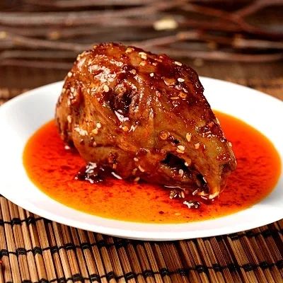 啃兔头要先从牙齿掰开分成两半,这一半肉最多,啃起来很过瘾;吃完脸颊上的后,手指一勾,兔舌头伸了出来,咬到嘴里,柔软中带着韧脆。兔下腭已没什么好吃的,但骨头里滋味尚存,仔仔细细吮吸一遍,这才算是啃干净。