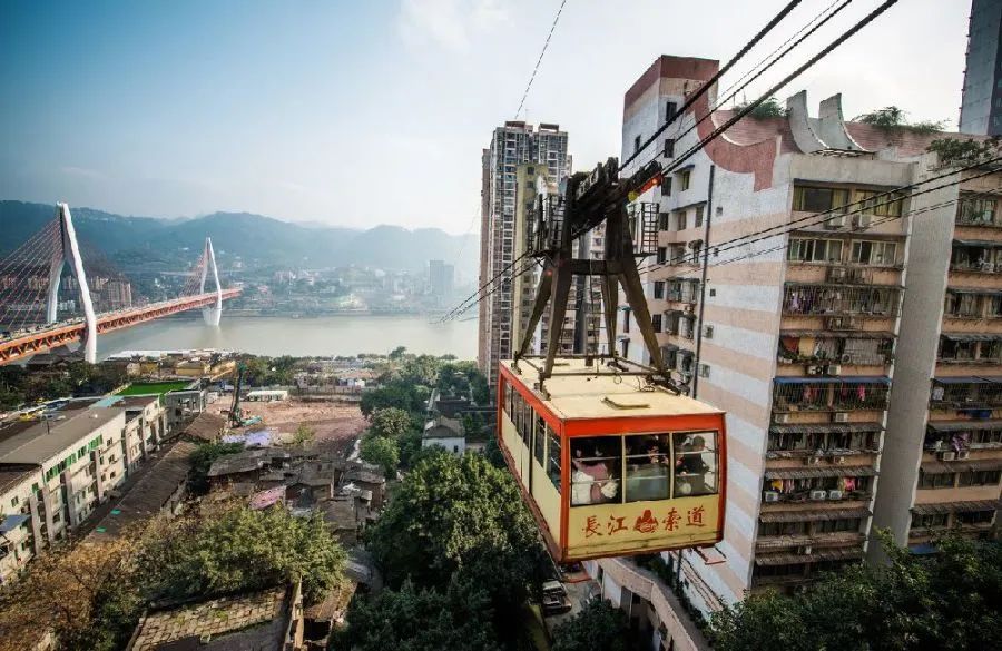 长江索道于1987年10月24日正式投入运营,全长1166米,时速每秒6米,最大载客量80人,在缓解重庆市民出行难中扮演着重要角色,被誉为“万里长江第一条空中走廊”和“山城空中公共汽车”,重庆人亲切地称它为“土飞机”。