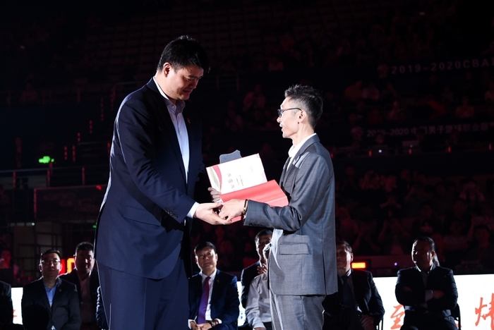 2019年11月刘炜退役仪式上的姚明和刘炜。2019年11月刘炜退役仪式上的姚明和刘炜。