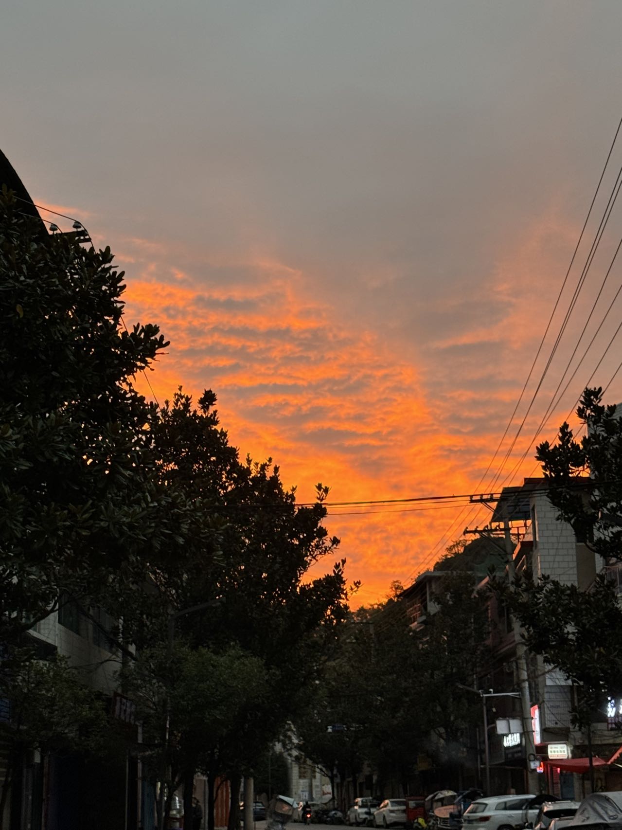 一大早看到了稍纵即逝的火红的朝霞》》》》