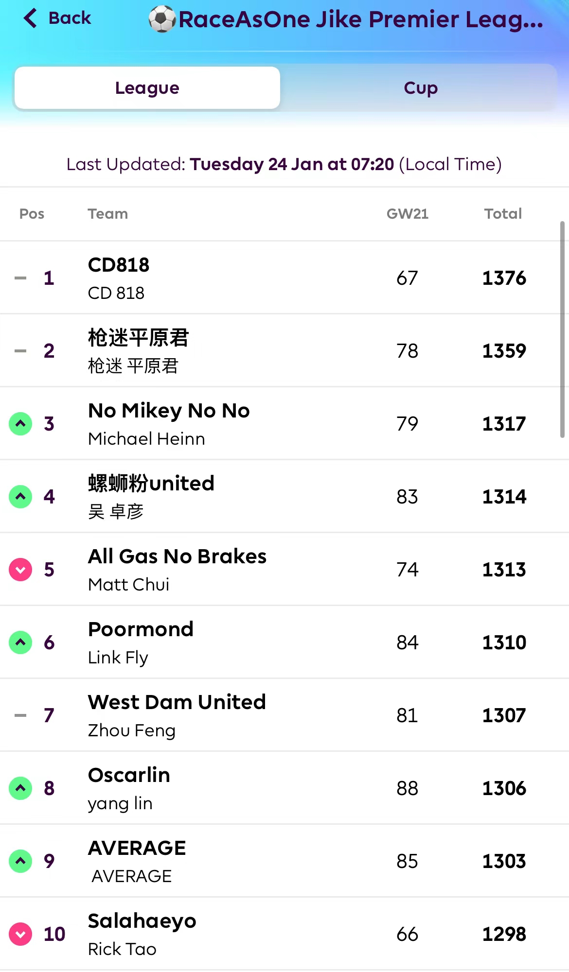 现在就登录英超官网fantasy.premierleague.com注册球队,挑选阵容,输入邀请码【rjthz7】加入RaceAsOne Jike Premier League鸡超联赛