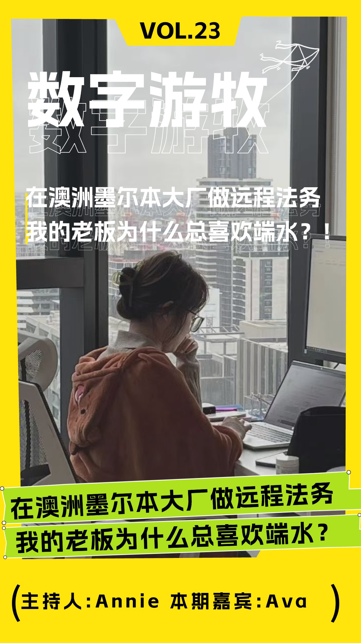 本期嘉宾Ava是澳洲墨尔本大厂的法务,毕业之后第一份全职工作选择了远程办公的她,感受到的是这家墨尔本公司给远程状态下的员工的全力支持,比如每周1v1经理对谈call,同事互助小组,这些机制和文化很大程度上增加了人与人之间的连接感,消除了一部分远程办公的孤独感。
