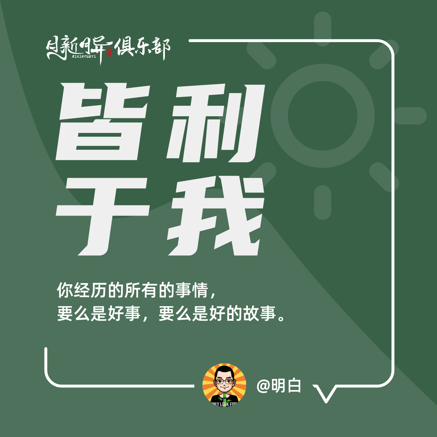 还有一句我觉得很好的话,它叫做,所有的你经历的所有的事情,它要么是好事,要么是好的故事。