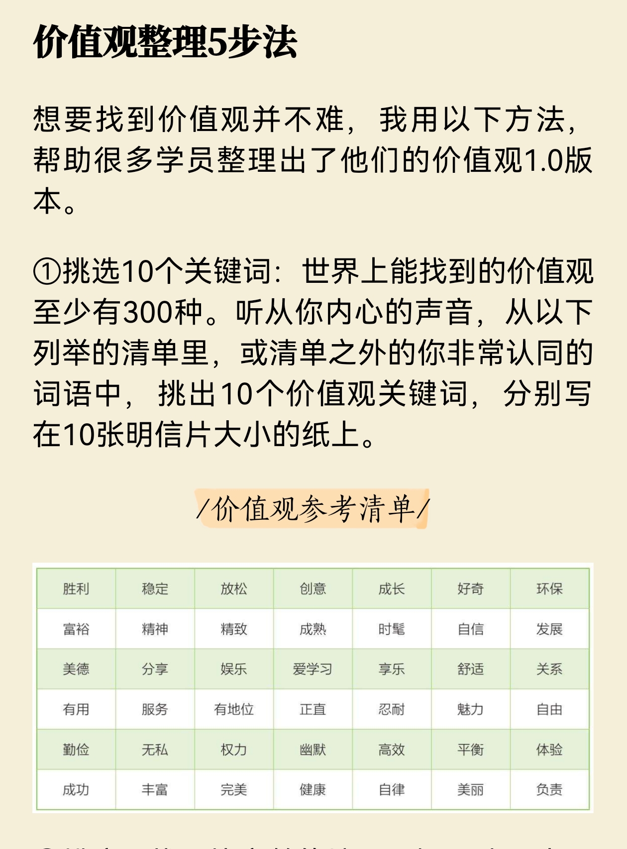 图源:《脱胎换骨的人生整理术》袁春楠,第4章03决断,价值观参考清单