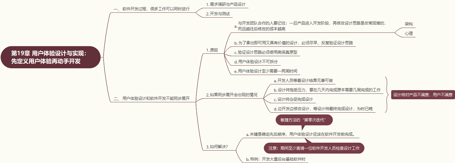 - 关键是确定先后顺序,用户体验设计应该在软件开发前完成。