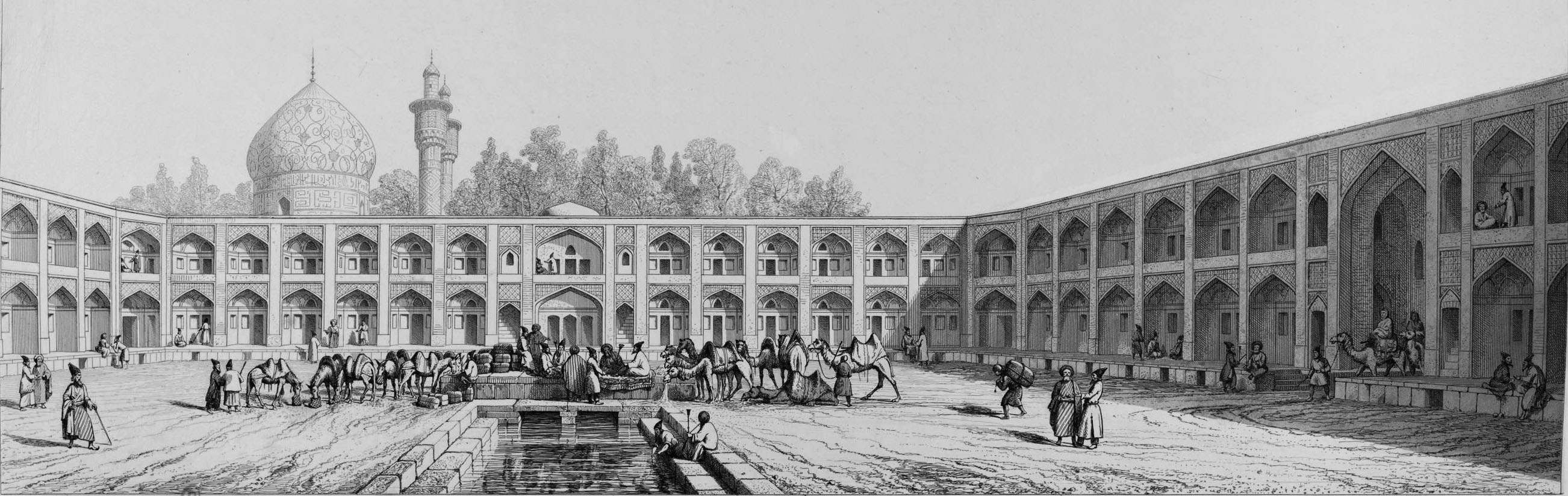 10:25 我惊讶地发现,除了新栽种的绿植花卉,阿巴斯酒店庭院的格局与速写画中1840年的商队驿站别无二致。
