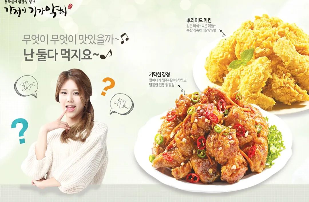 Gangjung炸鸡代言人:AOA 最近推出新口味——酥脆辣味炸鸡,大家可以去尝下哦。