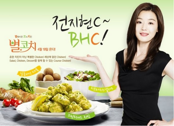 BHC炸鸡代言人:全智贤 BHC炸鸡请到了全女神坐阵,品牌的寓意是better(更好)、happier(快乐)、choice(选择),经常推陈出新的炸鸡品牌。