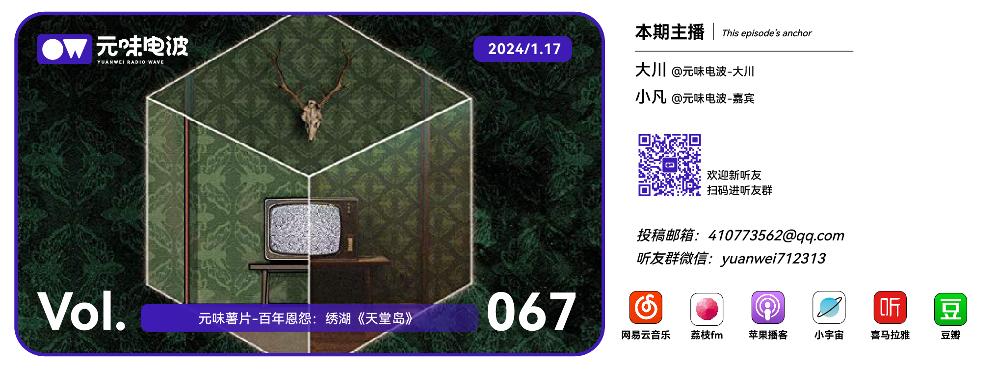 我们的节目,您可以在小宇宙、喜马拉雅、网易云音乐、荔枝 FM、荔枝播客搜索「元味电波」来订阅、收听。如果喜欢我们,也可以分享给你身边的朋友!