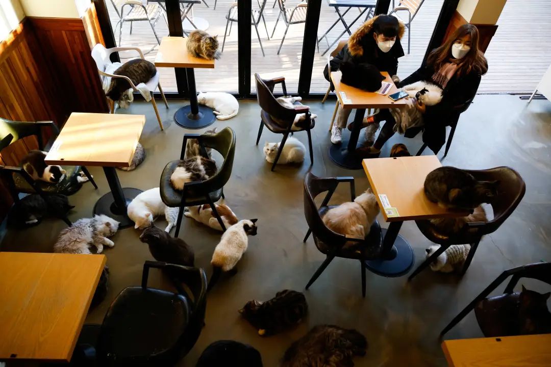 Cat Cafe是指一个特殊的咖啡店,其中会有一些猫咪,顾客可以在店内自由与猫咪互动,享用咖啡或其它饮品,这是一种比较受欢迎的喝咖啡方式,也是一种缓解心理压力的方式。