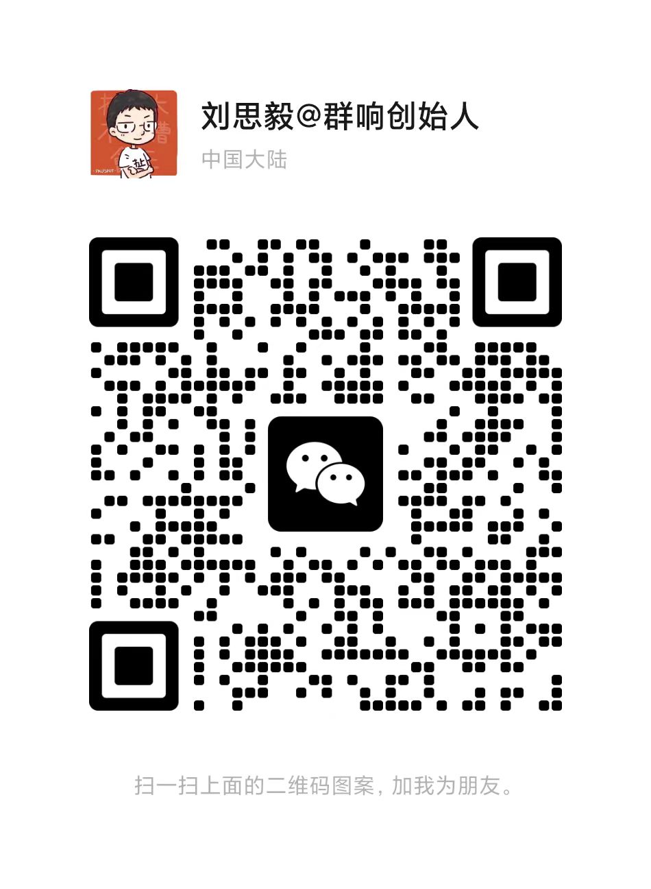 刘思毅:公众号「群响刘老板」,群响创始人,每天访谈1位年入 100 -1000 万的年轻创业者、日更原创文章 2000 天,和100万年轻创业者一起成长的男人。