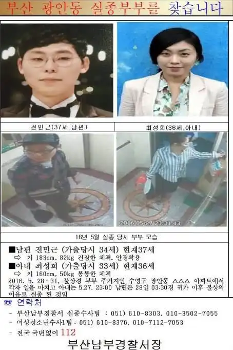 (韩国警方公布的消失的夫妻身份身份信息和照片)