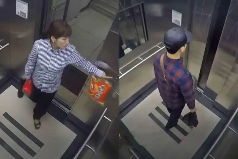 (崔成熙和全敏根分别在27、28号上电梯的视频录像截图)