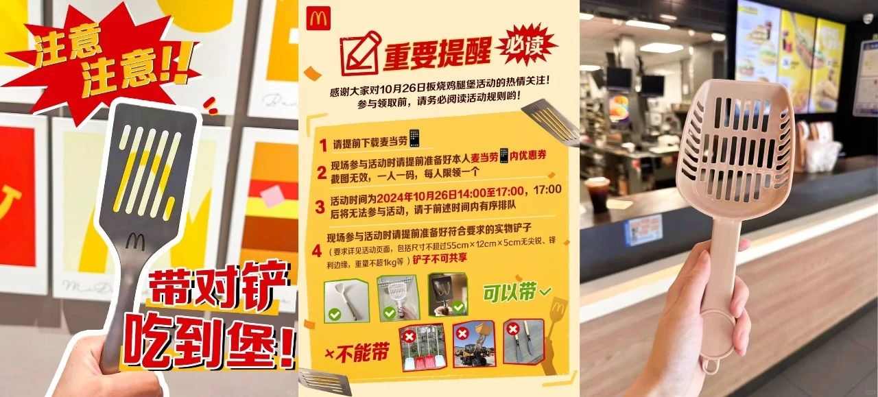 消费者们以极大的热情参与其中,展示各式各样的铲子,包括自制和家中宠物用品的创意替代品。这种幽默的参与方式为麦当劳的活动带来了自发的宣传效应,有效吸引了大量网络流量。