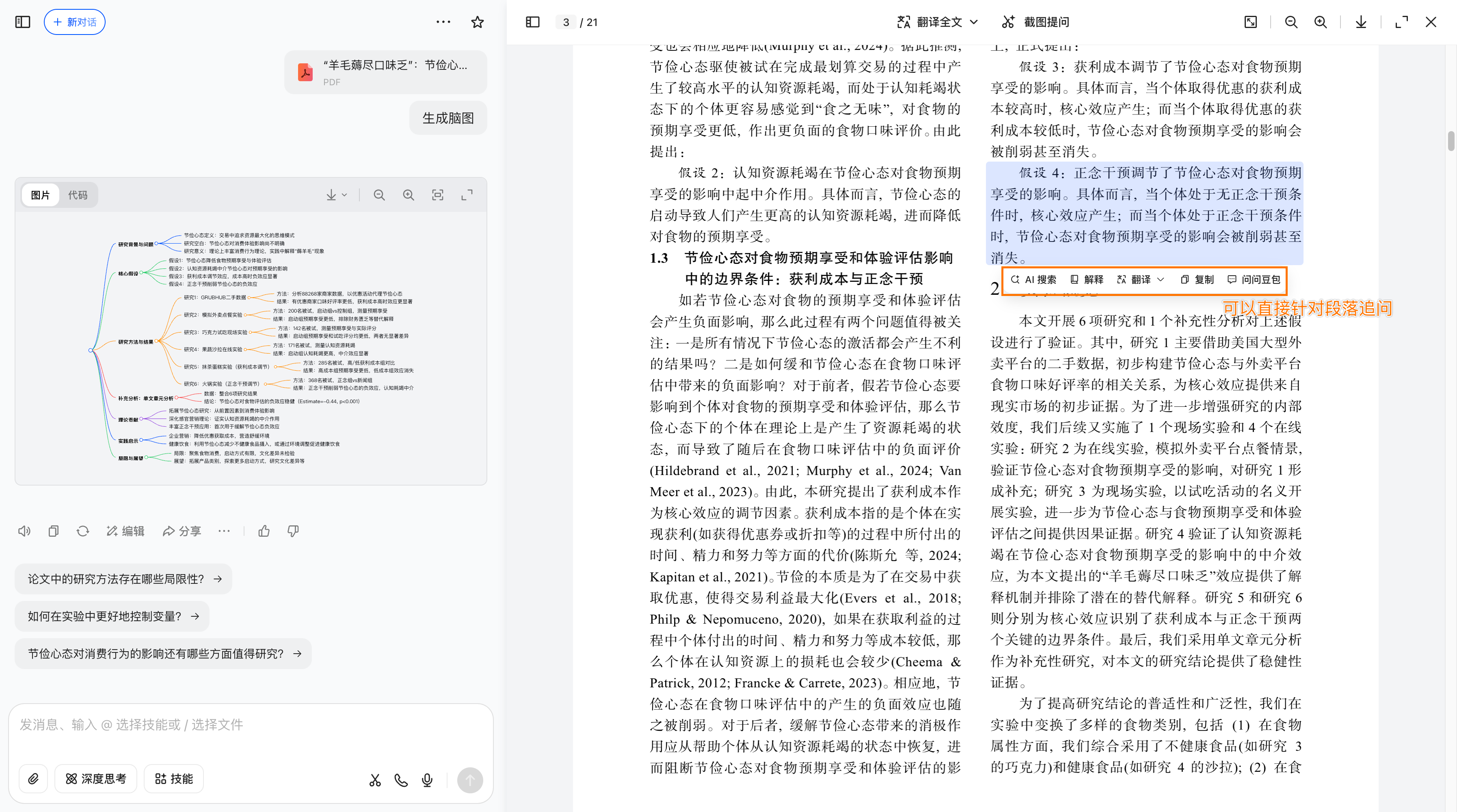 - 差异化亮点🌟:针对上传的文档解读,可以逐段逐句的再针对性追问,真的很方便(其他AI工具都暂时还没发现这个能力!)